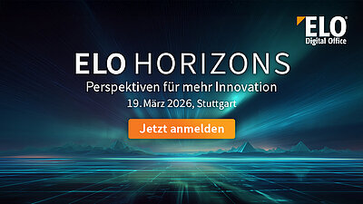 Sie wollen live erleben, wie Digitalisierungslösungen tatsächlich in Unternehmensprozesse implementiert werden und mit Branchenexperten netzwerken? Dann freuen wir uns, Sie auf der ELO Horizons 2026 am 19. März in Stuttgart begrüßen zu dürfen. Die Anmeldung ist kostenlos.