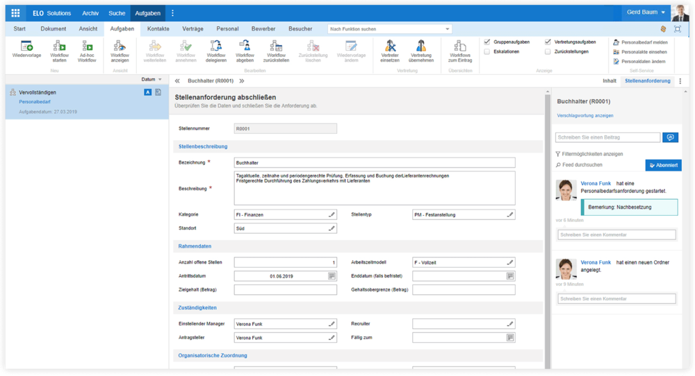 Dank des ELO ECM-Systems können die Daten aus dem Bewerbungsmanagement intern weiterverarbeitet werden, unter anderem für das Vertrags- und Personalmanagement oder die Buchhaltung. So ergeben sich smarte Workflows, die die Zusammenarbeit erleichtern. Schnell, vollautomatisiert und ohne Medienbrüche.